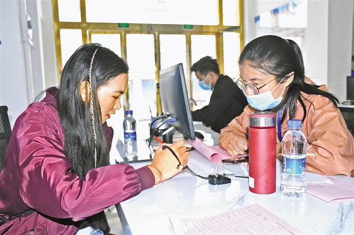 今年以來,西藏林芝市積極采取各種措施促進高校畢業生就業,其中每周五舉行的周五精品招聘會更是深受廣大高校畢業生和求職者的青睞。 圖為求職者在向企業代表咨詢相關問題。 記者 張猛 攝