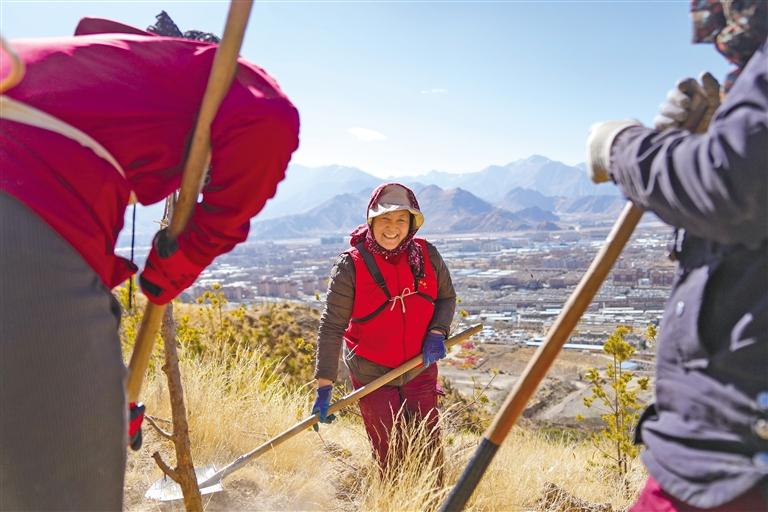 拉薩市堆龍德慶區(qū)東嘎社區(qū)二組村民在植樹(shù)。 新華社記者 晉美多吉 攝
