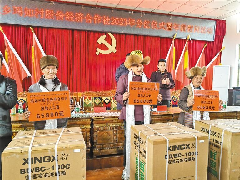 圖為瑪如村舉辦產業分紅和工資發放儀式現場。記者 丹增平措 攝