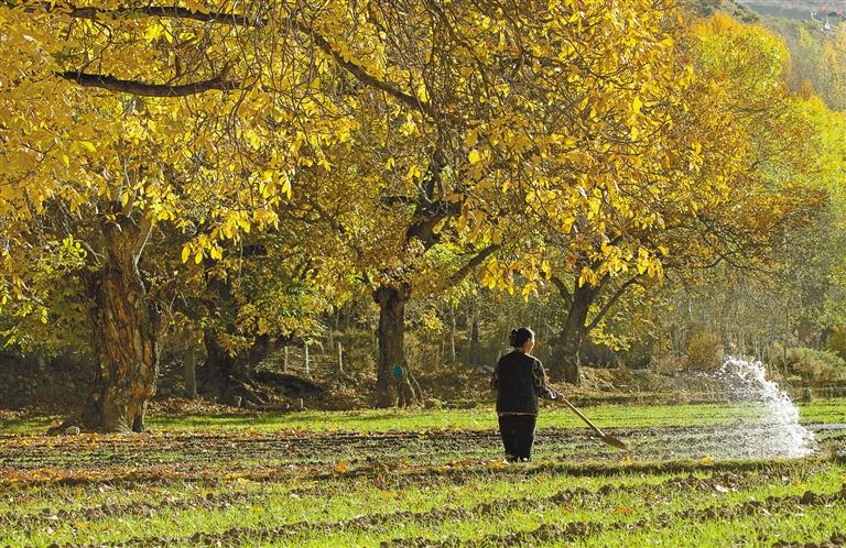 圖為加查縣安繞鎮熱果村次仁曲珍在冬灌。記者 洛桑 攝