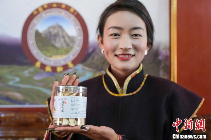 12月12日,西藏林芝工布江達縣巴河鎮白瑪康珠展示當地合作社加工的松茸產品。中新社記者 江飛波 攝