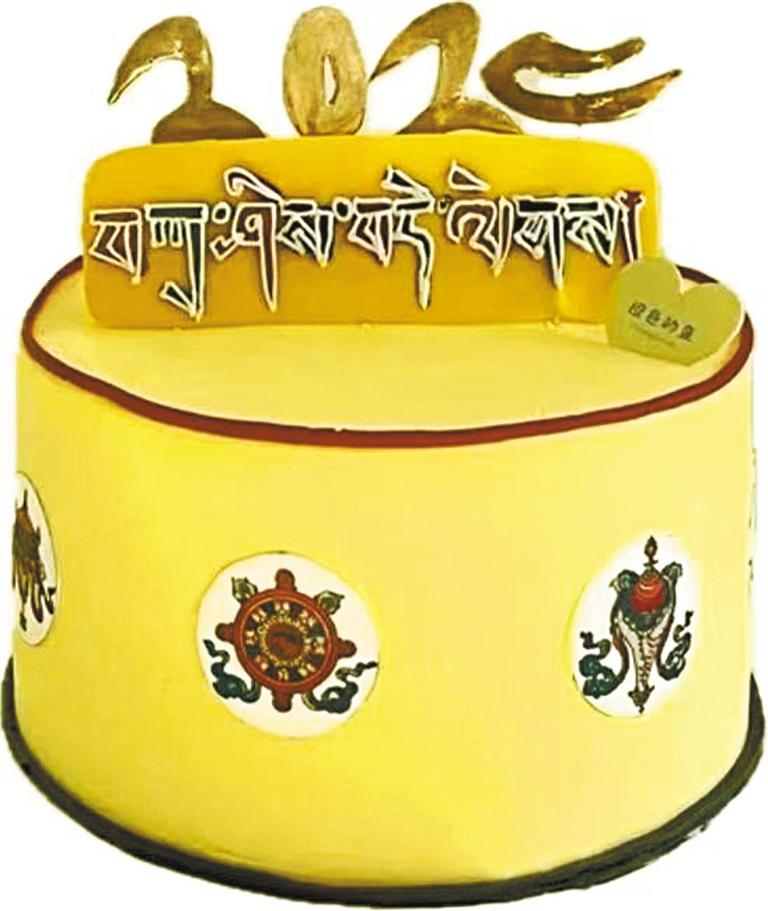 與搪瓷盆蛋糕的復古風情不同,藏式蛋糕更多地融入了藏式傳統元素和制作工藝。藏式蛋糕往往使用青稞、酥油、牦牛奶、牦牛酸奶、糌粑等傳統的藏式原料和手法進行制作,口感濃郁而特別,形態多參考藏式傳統圖案。相較于常見的西式蛋糕,藏式蛋糕更能夠凸顯出西藏特有的飲食文化和生活習俗。