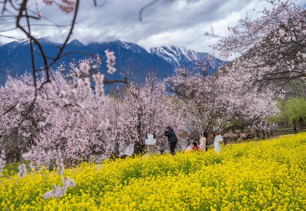 2024年3月,游客在林芝市巴宜區嘎拉村拍照留念。(新華社記者 孫非 攝)