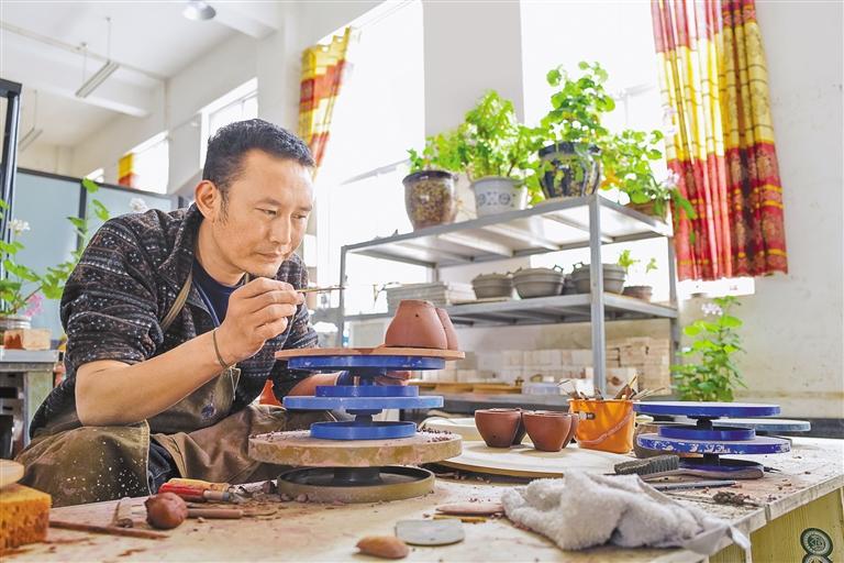 圖為察雅縣香堆鎮明亮民族手工藝品制造有限公司的手工藝人在制作陶瓷。記者 丹增群培 攝