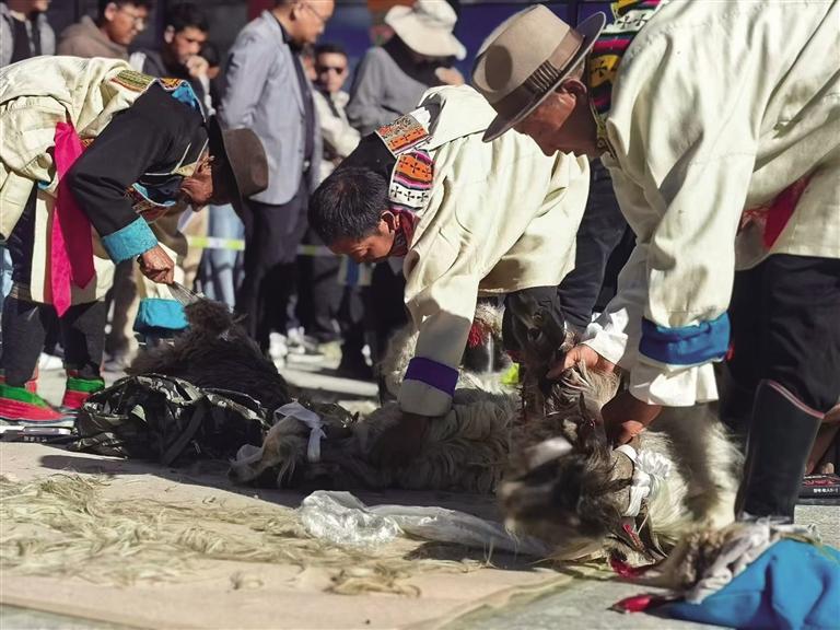 江孜縣群團工作部黨組書記、部長央吉介紹,江孜絨山羊作為當地珍貴的種質資源,其所產的羊絨不僅是氆氌產業的核心原料,更是牧民增收致富的“金羊毛”。近年來,在江孜縣人民政府的大力支持以及上海援藏江孜小組的協同推動下,江孜縣的絨山羊產業實現了從種質資源保護到產業鏈延伸的跨越式發展,取得了顯著的經濟效益和社會效益。
