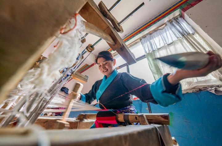 一人富,養一家;眾人富,興一方。嘎日在縣政府支持下,把“邦典”技藝這門“傳家寶”分享給了更多人。她免費教出278個徒弟,其中23人在縣城周邊開起了小作坊,“老祖宗傳下的不只是手藝,更是吃飯的本事”, 嘎日的行動印證了貢嘎縣“以技富民”的初衷。