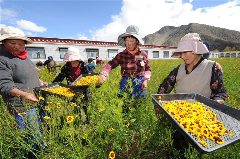 圖為拉薩市曲水縣才納鄉現代農業科技園的工作人員正在采摘雪菊。西藏日報記者 白瑪澤旺 攝