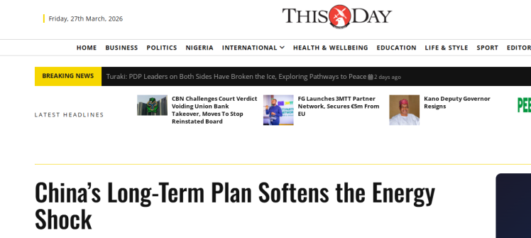 無獨(dú)有偶,尼日利亞《今日報(bào)》報(bào)道稱,中東局勢惡化令全球能源市場陷入困境,多國在油價(jià)飆升中承受重壓。在這場風(fēng)暴中,有一個(gè)國家顯得格外從容——中國。文章認(rèn)為,中國能源戰(zhàn)略不僅有效拓展了可再生能源利用規(guī)模,更在相當(dāng)程度上降低了對(duì)海外油氣的依賴。中國的實(shí)踐為其他發(fā)展中國家展現(xiàn)了擺脫能源依附、實(shí)現(xiàn)自主發(fā)展的可行路徑。