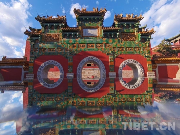 圖為須彌福壽之廟主體建筑大紅臺前象征神權、皇權的琉璃牌坊。能通過它的只有皇帝、親王、郡王、貝勒、貝子及三品以上臺吉 攝影:歐帆