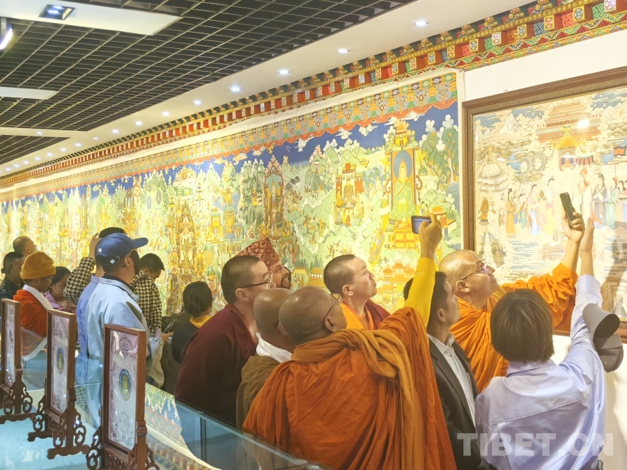 多國宗教界人士在西藏日喀則唐卡學校欣賞唐卡作品 攝影:王淑