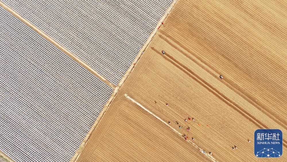 3月17日,河南省焦作市溫縣黃莊鎮南韓村農民在田間種植鐵棍山藥(無人機照片)。新華社發(徐宏星攝)