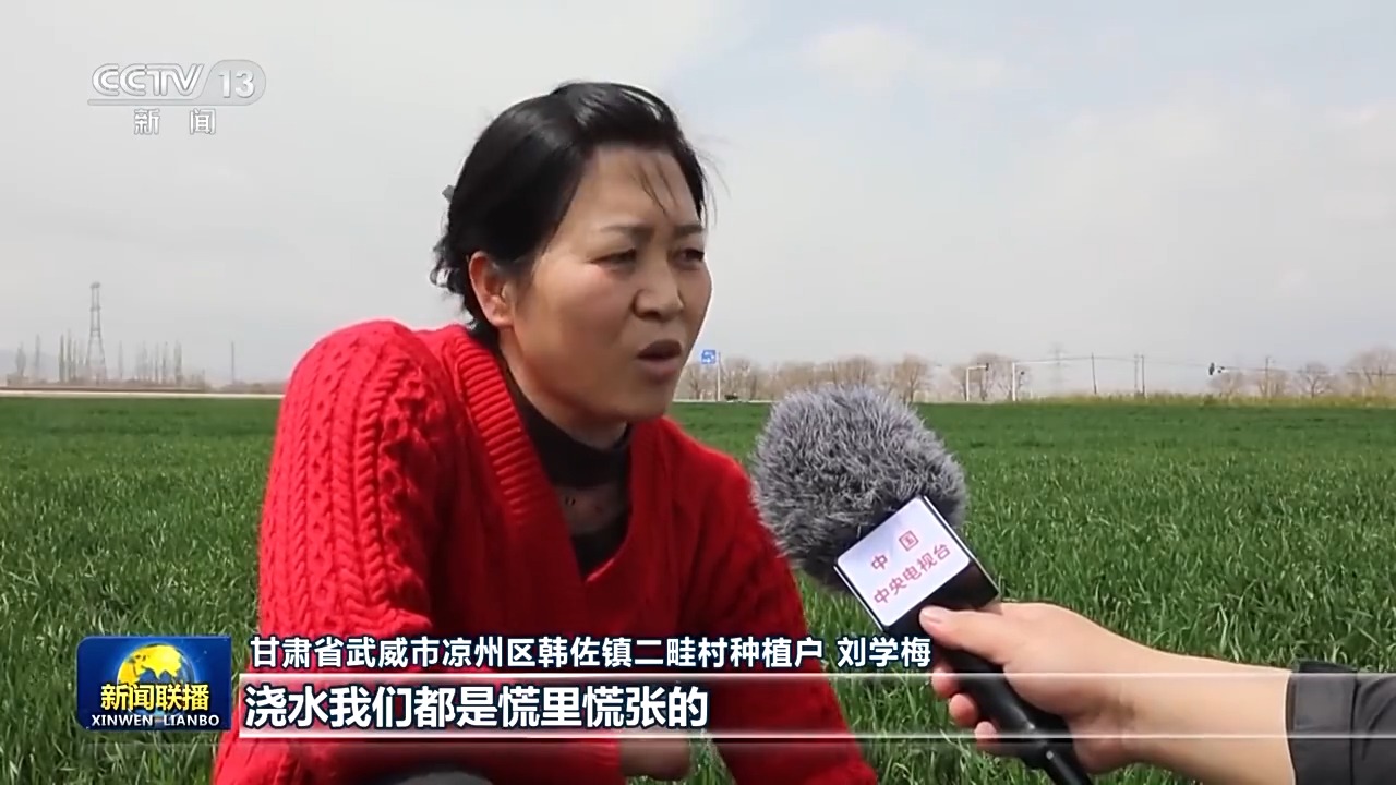 甘肅省武威市涼州區韓佐鎮二畦村種植戶 劉學梅:往年這個時間,澆水我們都是慌里慌張的。又怕澆不上水,又怕水輪次過掉了?,F在用水有了保障,看到地里綠油油的麥田,心里既踏實又高興。