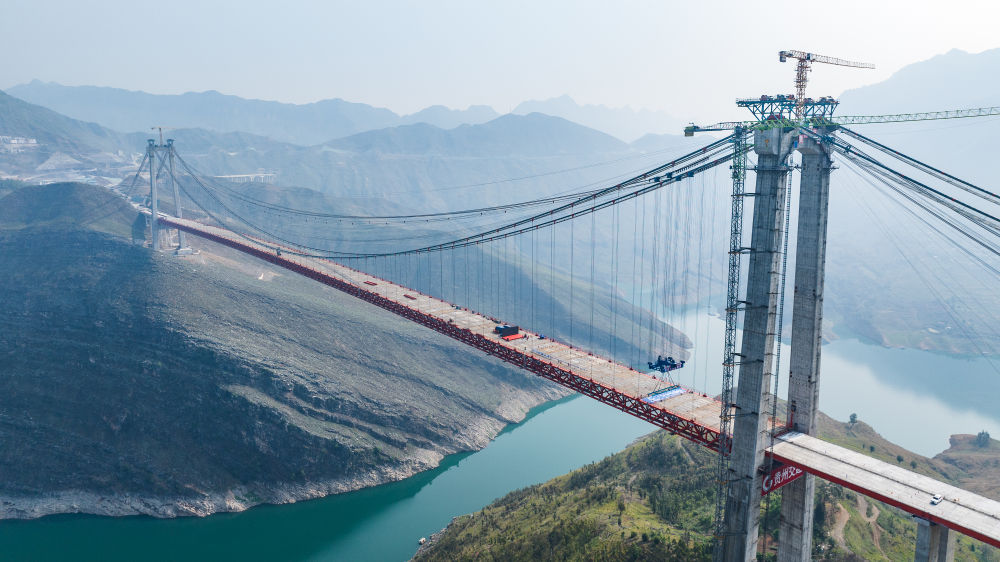 貴州交建集團投資建設的納晴高速牂牁江大橋順利實現合龍,為納(雍)晴(隆)高速全線建成通車打下堅實基礎(4月28日攝,無人機照片)。新華社記者 陶亮 攝