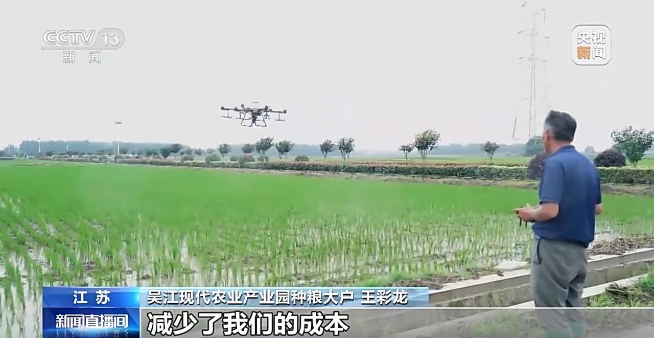 吳江現(xiàn)代農(nóng)業(yè)產(chǎn)業(yè)園種糧大戶 王彩龍:以前我們打汽油充電的話,成本一天至少在150塊左右,現(xiàn)在用了這個(gè)充電樁,在15到20塊之間吧,減少了我們的成本。