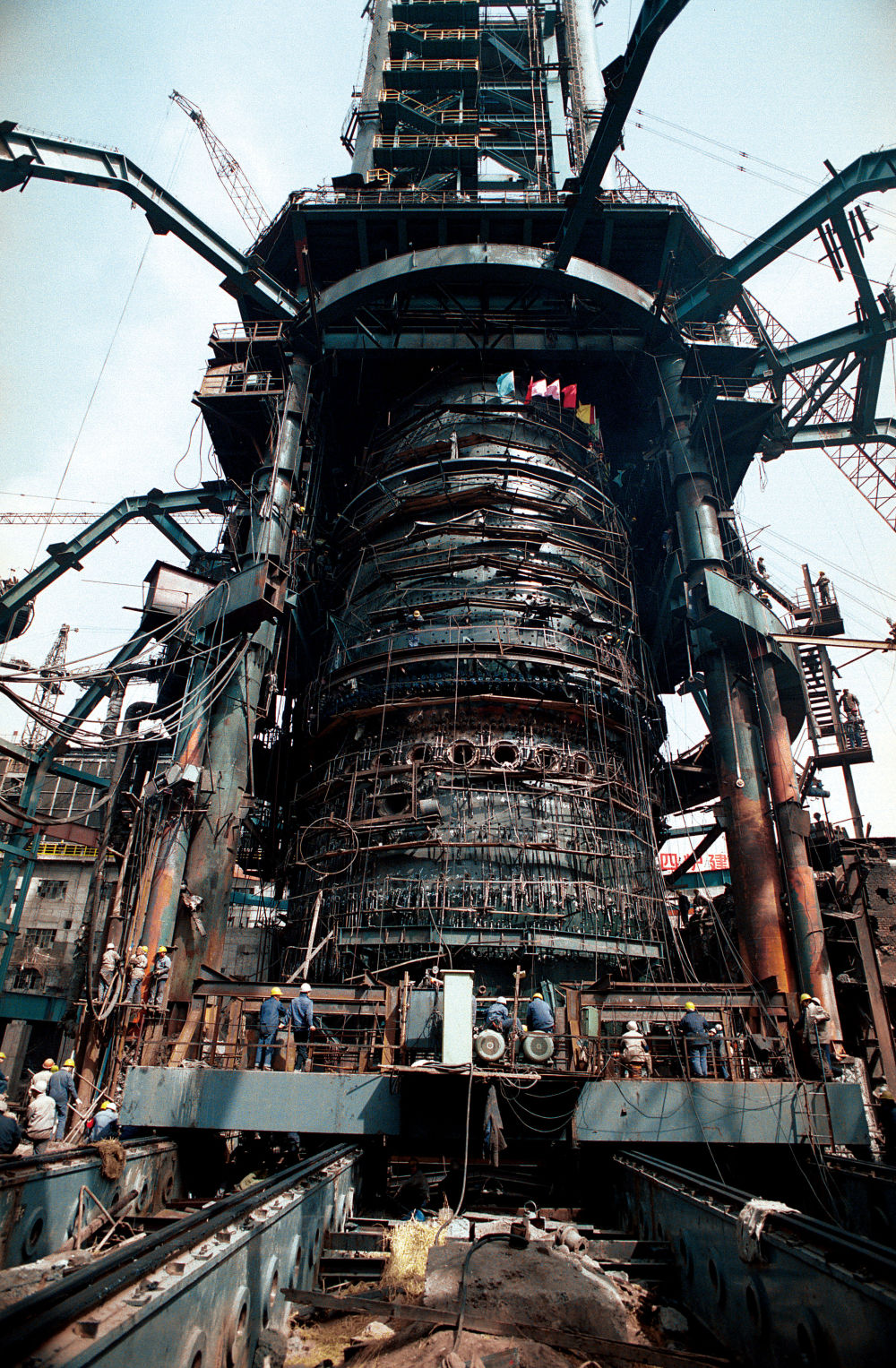 1992年4月,四高爐整體推移。新華社發(楊國東攝)