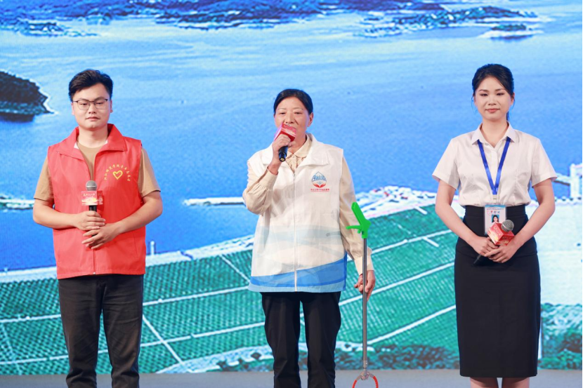 “河干凈、水清,喝水的人更放心”,丹江口市六里坪鎮財神廟村的護河員秦立萍說。秦立萍帶著日常巡河的工具上臺分享,這個撿垃圾的夾子,她出門隨身帶著,看到河岸旁邊的垃圾隨時撿,她說“我們做的是撿垃圾的臟活,但我覺得也是最‘干凈’的事。”