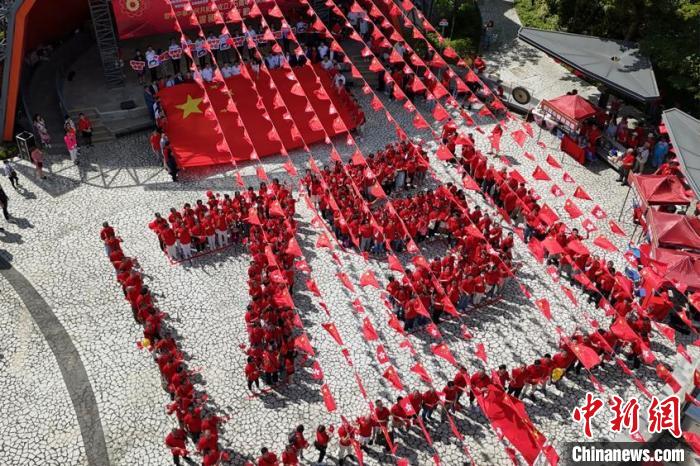 活動(dòng)現(xiàn)場(chǎng)超過(guò)300人組合排列數(shù)字“75”,寓意慶祝新中國(guó)成立75周年,伴隨著現(xiàn)場(chǎng)升旗儀式的進(jìn)行,大家齊聲高唱國(guó)歌,慶祝氣氛熱烈。