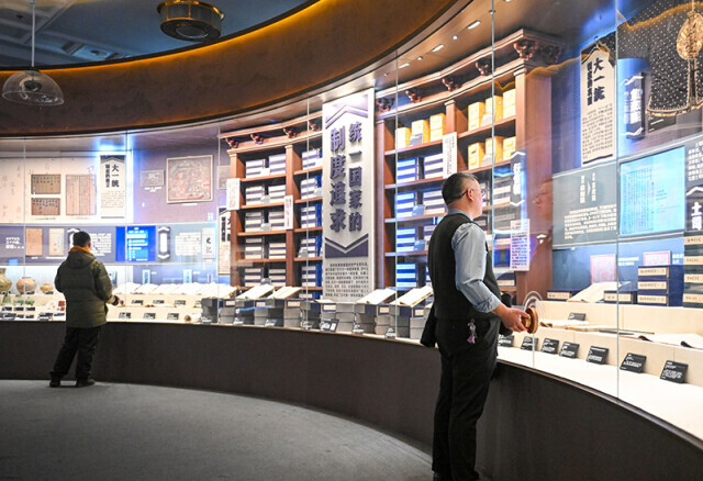 ▲2023年12月23日,參觀者在鑄牢中華民族共同體意識文物古籍展上參觀。展覽分為大一統、大交融、大團結三個單元,共展出1500余件珍貴文物古籍。 新華社記者 郝建偉 攝