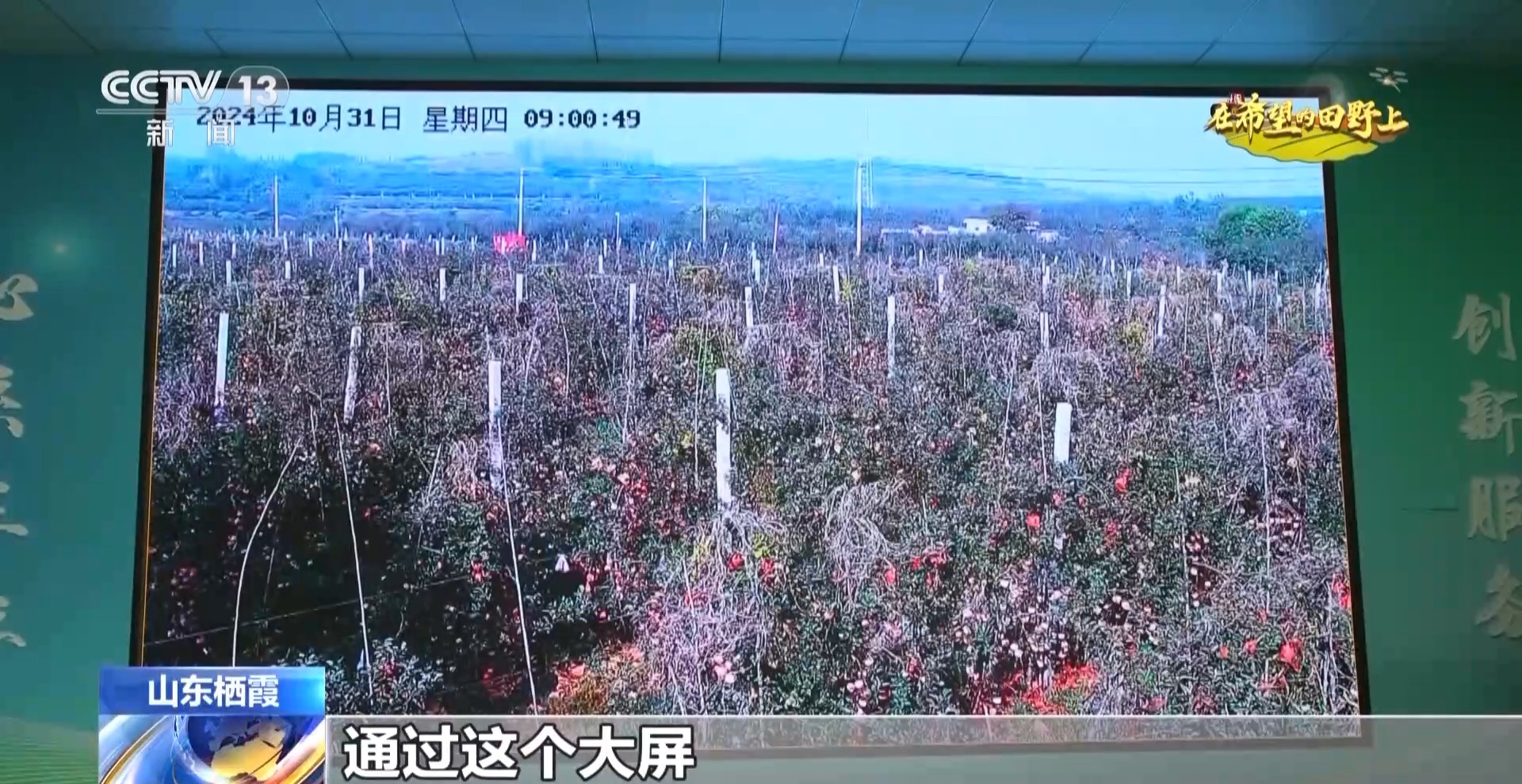 棲霞市供銷合作社聯合社負責人 李國勇:通過這個大屏,我們可以清楚地看到果樹的生長情況,平臺也會將果樹生長情況相關信息通報給果農進行精準采摘。