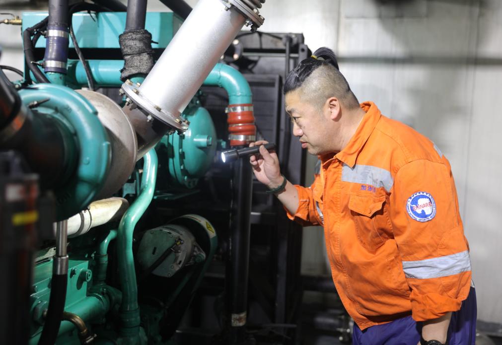 發電班班長張冬在對發電機進行巡視檢查(12月1日攝)。新華社記者 黃韜銘 攝