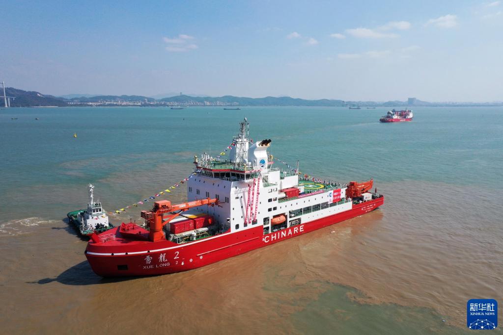 2024年11月1日,執(zhí)行中國第41次南極考察任務(wù)的“雪龍”號和“雪龍2”號船從廣州南沙國際郵輪母港碼頭出發(fā)。新華社記者 黃國保 攝