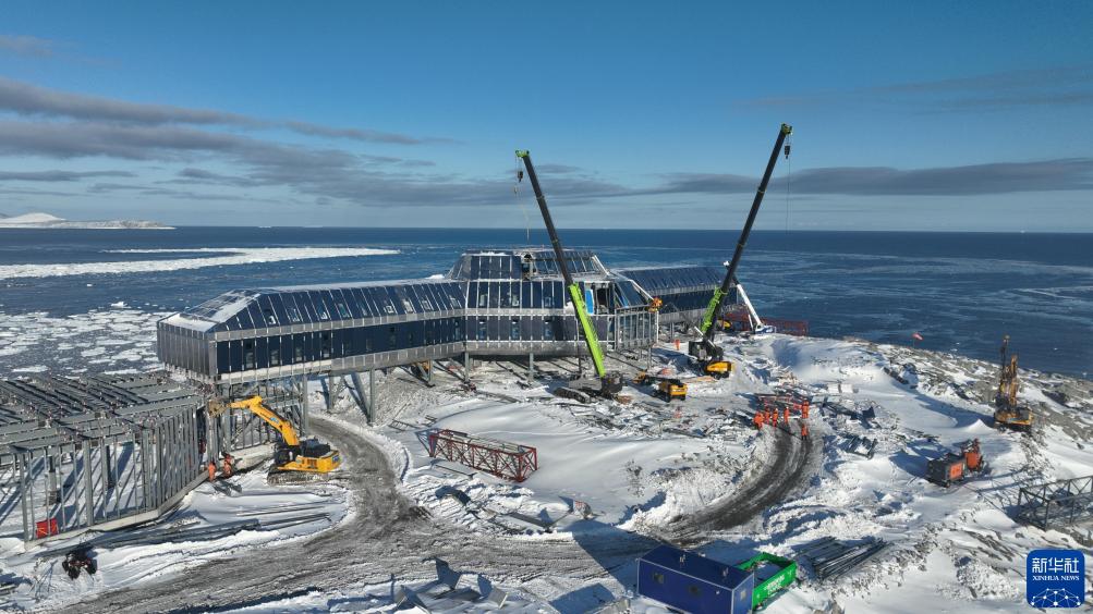 2024年1月25日拍攝的中國南極秦嶺站建設(shè)現(xiàn)場。新華社發(fā)(王海楠 攝)