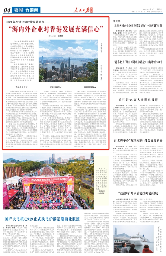 “2024年,在中央政府的堅實支持和特區政府的開拓努力下,香港經濟根基厚、市場韌性強,正在變局中開新格局、穩步前行。”展望2025年發展,特區政府財政司司長陳茂波充滿信心地表示,香港會繼續改革創新、搶抓機遇,加速融入國家發展大局,更主動對接國家發展戰略,助推香港的經濟、社會、民生等各項事業取得更好發展,讓香港“國際大都會”的品牌煥發新光彩。