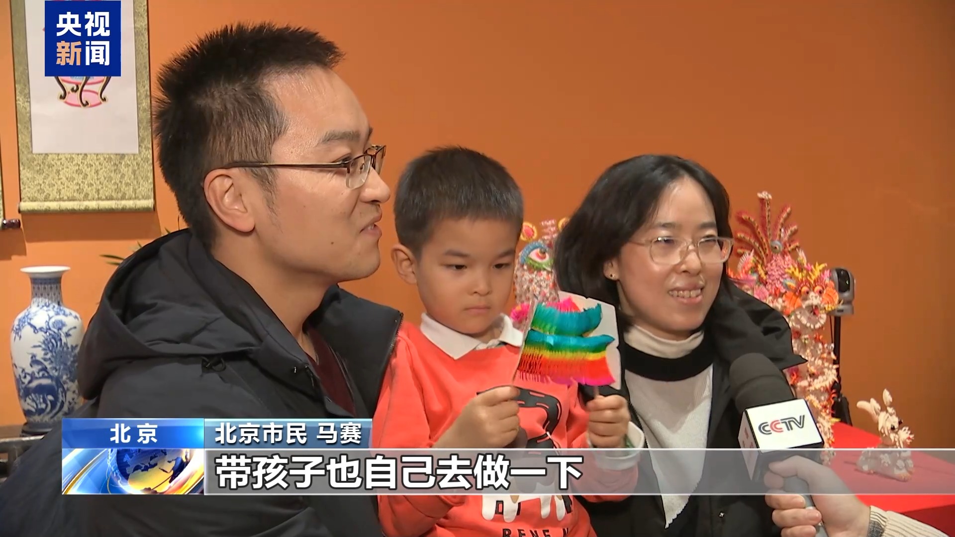 中國非物質文化遺產館黨委書記 王晨陽:在當地,彩扎門叫“鬧紅火”,預示著春節能夠紅紅火火。