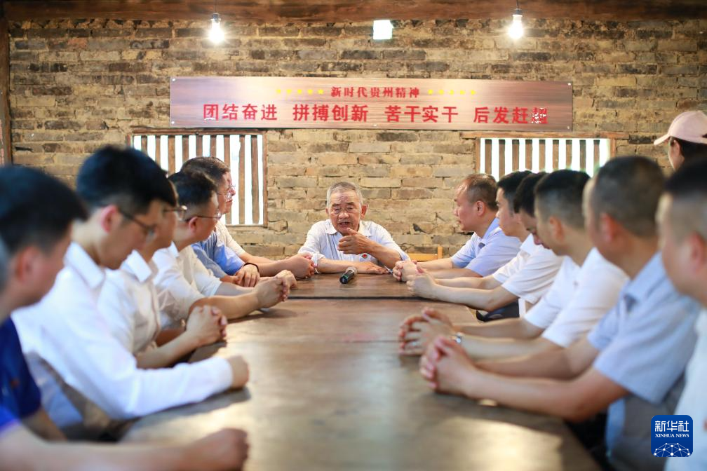 黃大發為前來參加黨建活動的人們講述修渠故事(2021年6月16日攝)。新華社記者 劉續 攝