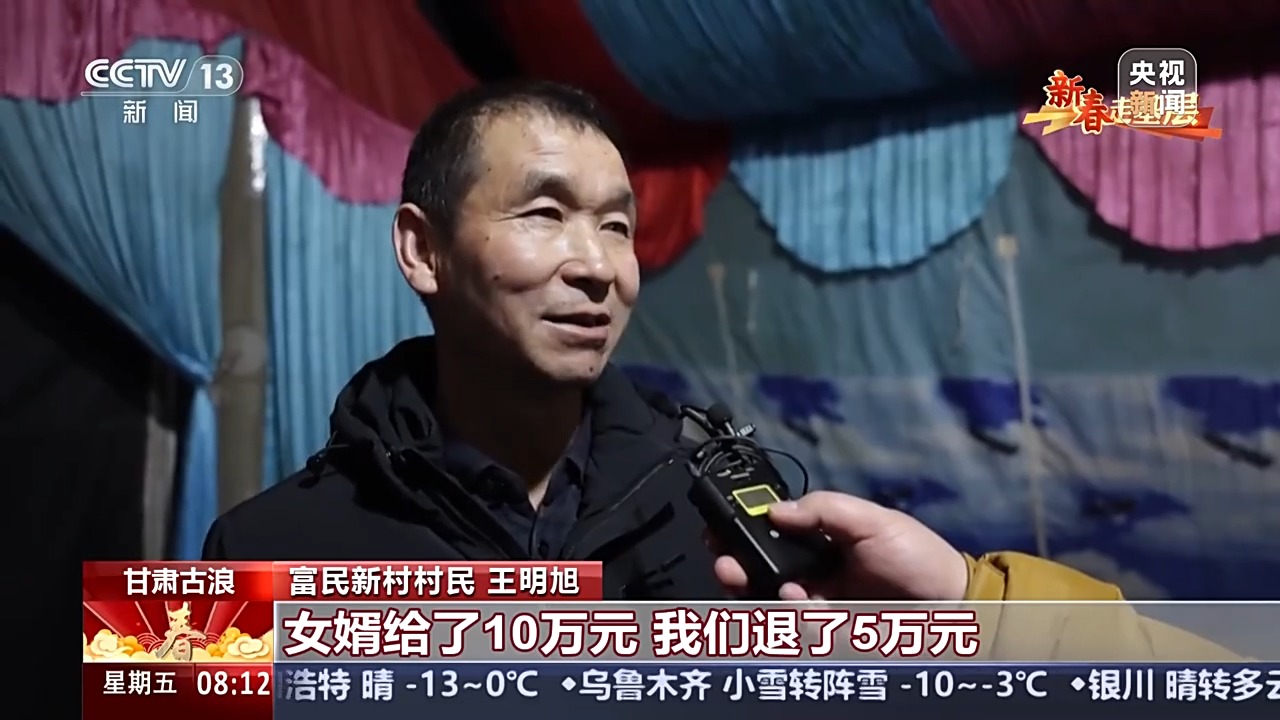 富民新村村民 王明旭:女婿給了10萬元,我們退了5萬元,剩下的用于婚禮的開銷。要得多了,也是給年輕人增加負擔。