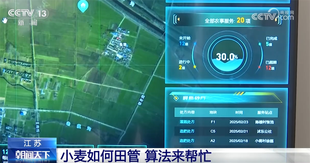 眼下,江蘇省邳州市、新沂市的小麥陸續(xù)進入返青和灌溉期,這也是小麥生長最為關(guān)鍵的時期。為了更加精細地照顧好麥田,當?shù)厥褂昧瞬簧僦悄茉O(shè)備幫忙,機器和算法的運用讓麥田管理更加高效。