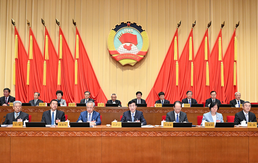 3月9日下午,政協第十四屆全國委員會常務委員會第十一次會議在北京舉行。中共中央政治局常委、全國政協主席王滬寧主持會議。新華社記者 岳月偉 攝