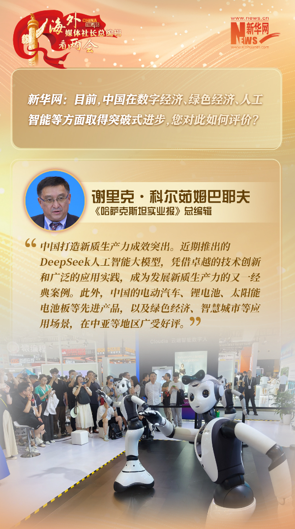 本期報道中,《哈薩克斯坦實業報》總編輯謝里克·科爾茹姆巴耶夫表示,中國提出的共建“一帶一路”倡議為哈中合作開辟了新天地,期待哈中兩國未來共同努力,在推動基礎設施建設、發展數字經濟、打造文化教育等領域合作新平臺上取得新成果。