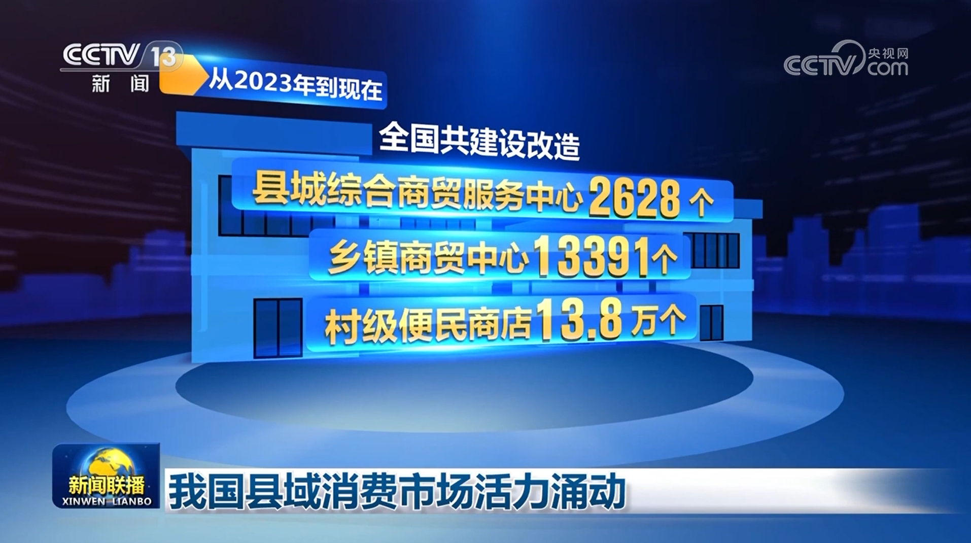 商務部數據顯示,從2023年到現在,全國共建設改造縣城綜合商貿服務中心2628個、鄉鎮商貿中心13391個、村級便民商店13.8萬個。