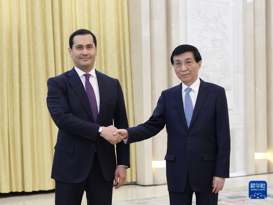 3月25日,中共中央政治局常委、全國政協主席王滬寧在北京會見烏茲別克斯坦總統特別顧問烏穆爾扎科夫。新華社記者 丁林 攝