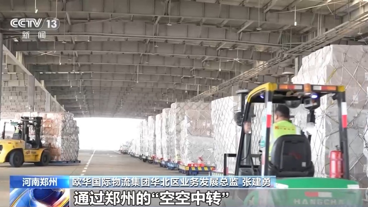 新朋友入駐,老朋友的業務也在拓展。記者采訪期間,一架從韓國飛來的全貨機剛剛落地,工作人員告訴記者,這架全貨機是通過“空空中轉”將電子產品等貨物從韓國首爾運抵鄭州,隨后再轉運至印度金奈。