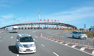 圖為車輛經港珠澳大橋抵達珠海。中新社記者 陳驥旻攝