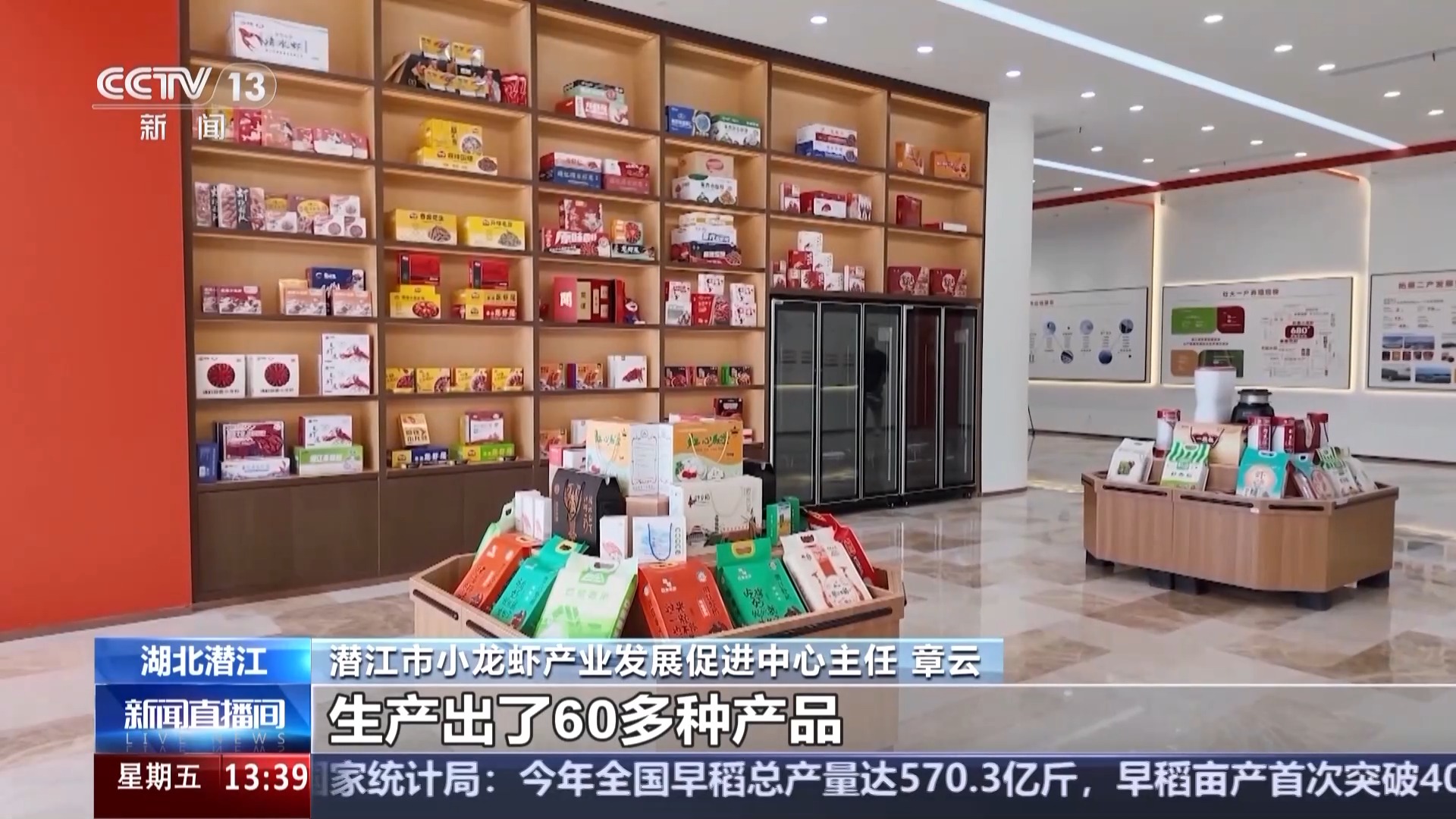 潛江市小龍蝦產業發展促進中心主任 章云:截至目前,潛江小龍蝦的規模以上加工企業共有19家,生產出了60多種產品,組成了小龍蝦產品矩陣,建立了涵蓋餐飲、食品、醫療等多領域的全產業鏈體系。可以說,從田間到餐桌,從國內到國際,潛江將這小小的一只蝦“吃干榨凈”,綜合(年)產值已經突破了870億。