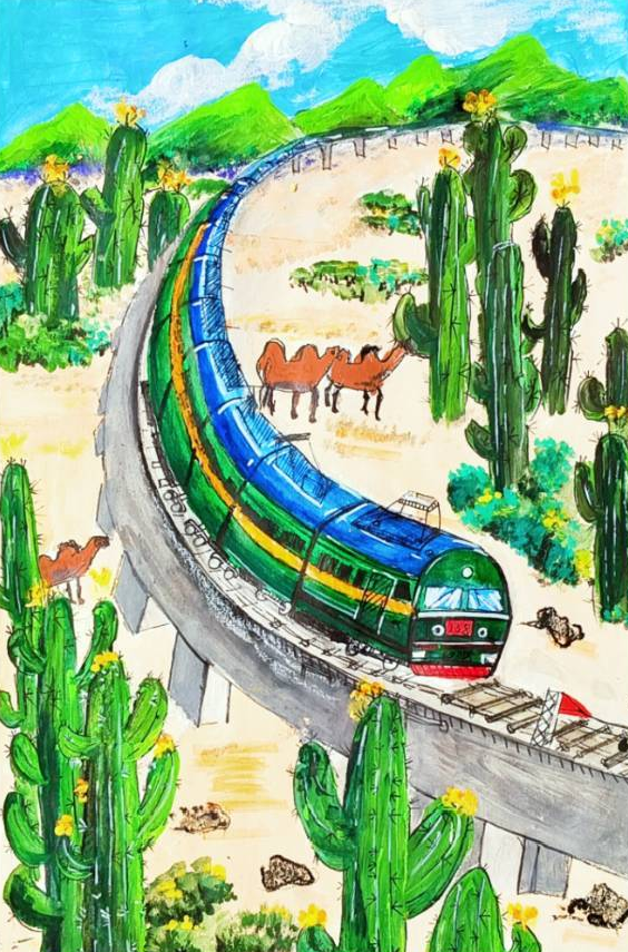 回家的路上,我翻著爸爸收藏的老照片:黑白照片里是詹天佑設計的京張鐵路;彩色照片中,嶄新的京張高鐵穿越居庸關隧道,智能列車自動駕駛,外國人都豎起大拇指。爺爺常說“鐵路是國家的脊梁”,如今,這脊梁挺得筆直,載著14億人的夢想飛馳。