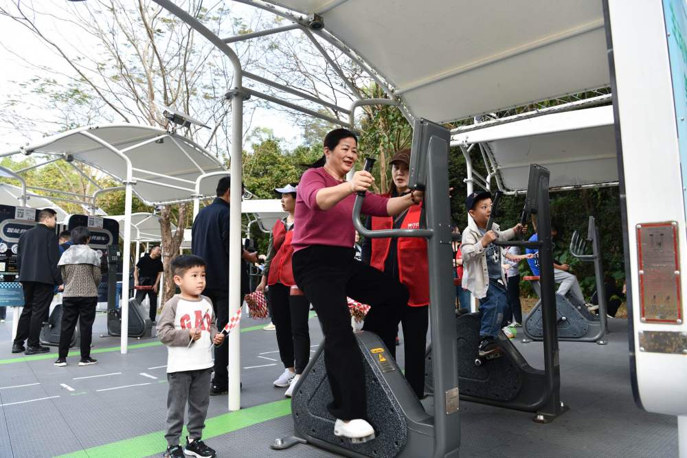 2024年1月20日,市民在深圳蓮花山公園西區(qū)室外智能健身房參加競賽活動。新華社記者 梁旭攝