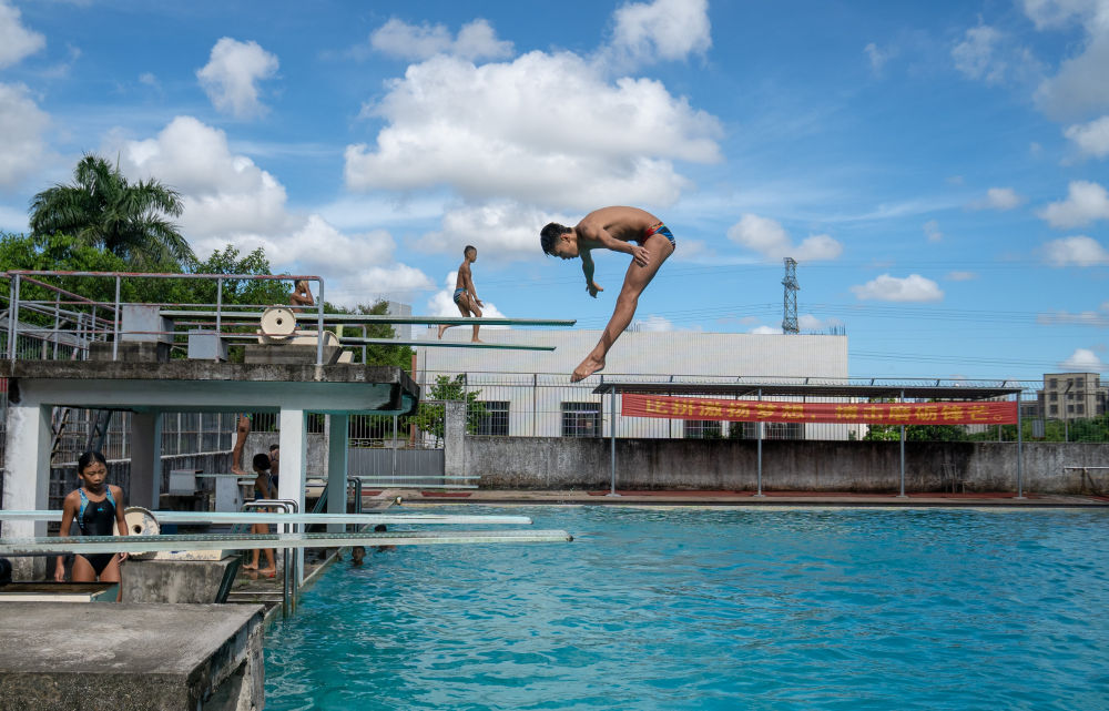 2021年9月2日,湛江市體校的跳水學員在進行訓練。新華社記者 周自揚 攝