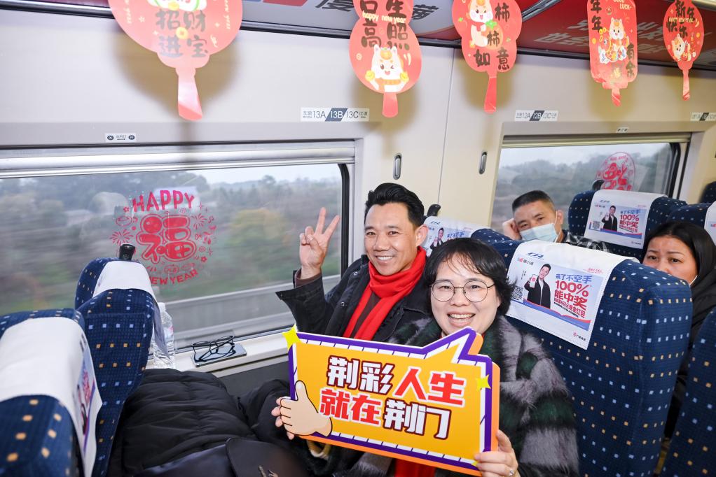 喜慶春聯(lián)、福字窗花、吉祥燈籠……2月7日,布置一新的G1136次列車,載著800多名在外務(wù)工的湖北荊門人從廣州啟程,一路歡聲笑語(yǔ)中,奔赴他們闊別已久的家鄉(xiāng)。