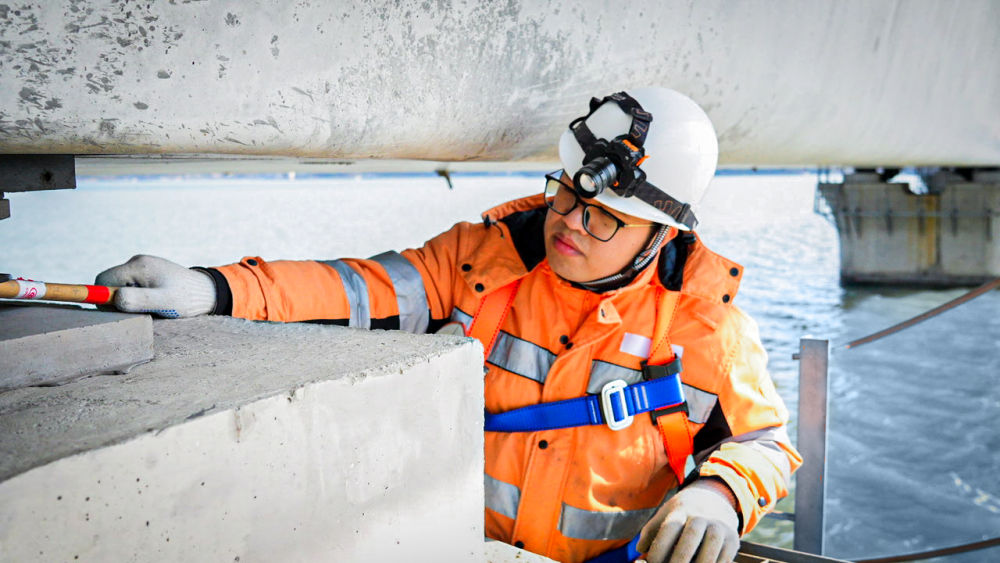 從踏上箱梁的那一刻起,他們就必須完成對212座高鐵橋梁、橋墩的巡視,對8000多顆高強度螺栓進行敲擊檢查,為旅客和列車提供安全保障。