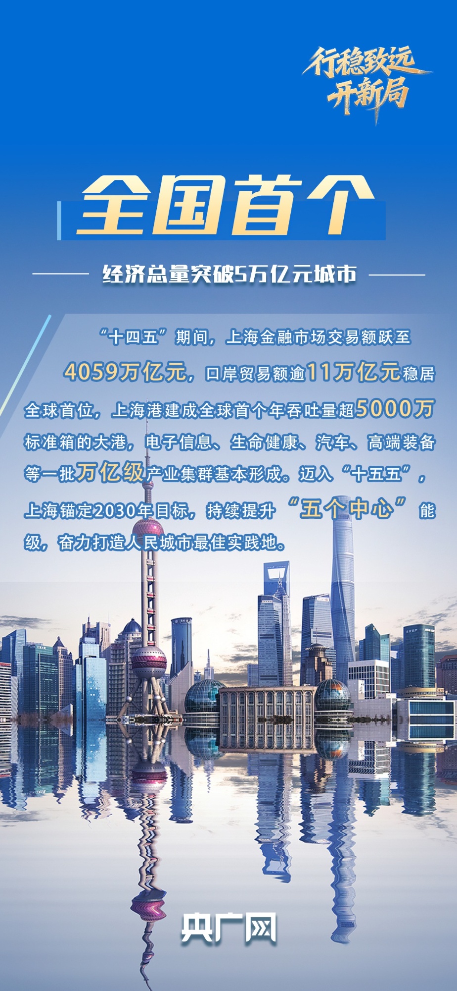 “十四五”期間,上海聚焦建設國際經濟中心、金融中心、貿易中心、航運中心、科技創新中心的重要使命,綜合實力實現新跨越。全市生產總值從4.16萬億元增加到5.67萬億元,成為全國首個經濟總量突破5萬億元的城市,躋身全球城市前五位。成績單背后,既是上海“五個中心”建設的階段性成效,更是“十五五”期間邁向更高能級的底氣所在。