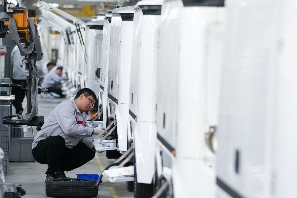 工人在新石器(鹽城)智能制造有限公司無人車生產線上進行生產作業(3月25日攝)。新華社記者 李博 攝