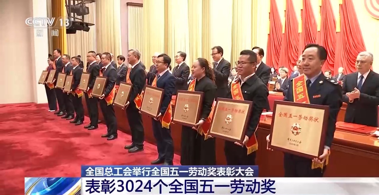 今天,全國總工會舉行全國五一勞動獎表彰大會,表彰全國五一勞動獎3024個。其中,全國五一勞動獎狀379個、全國五一勞動獎章1462名、全國工人先鋒號1183個。