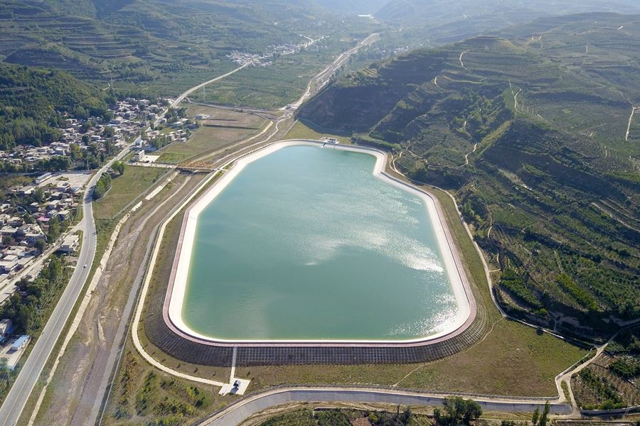 這是在天水市拍攝的已投用的天水城區(qū)引洮供水工程楊家灣調(diào)蓄水池(無人機(jī)照片)。新華社記者 范培珅 攝
