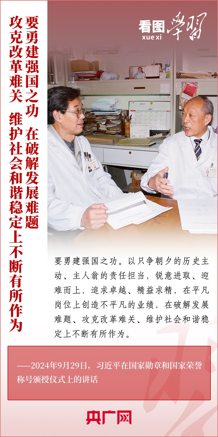 9月29日,中華人民共和國國家勛章和國家榮譽稱號頒授儀式在北京舉行,習(xí)近平總書記向國家勛章和國家榮譽稱號獲得者頒授勛章獎?wù)虏l(fā)表重要講話??倳洀娬{(diào),全黨全國各族人民要以英雄模范為榜樣,團結(jié)奮進(jìn)、砥礪前行,匯聚起共襄強國盛舉的磅礴力量。一起來學(xué)習(xí)!