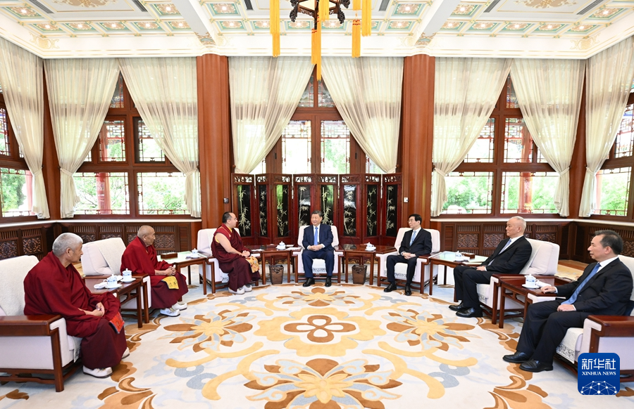 6月6日,中共中央總書記、國(guó)家主席、中央軍委主席習(xí)近平在北京中南海接受班禪額爾德尼·確吉杰布拜見(jiàn)。新華社記者 謝環(huán)馳 攝