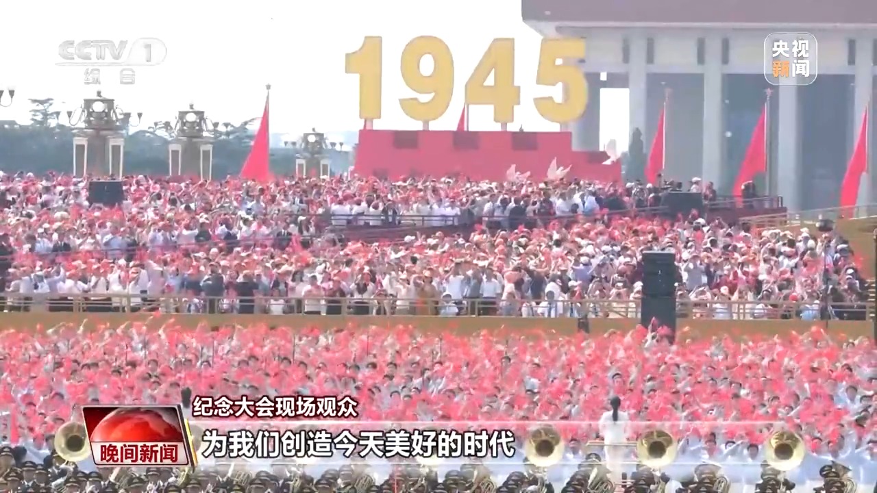 紀(jì)念大會現(xiàn)場觀眾:就像總書記說的“執(zhí)大象、天下往”,我覺得我們今天真的有能力、有擔(dān)當(dāng),去維護(hù)世界的繁榮與和平。同時我們也要銘記歷史,珍惜過去革命先輩、抗日英雄們創(chuàng)造的美好時代。在新時代,我們更應(yīng)該努力,踔厲奮發(fā),創(chuàng)造更加美好的未來。